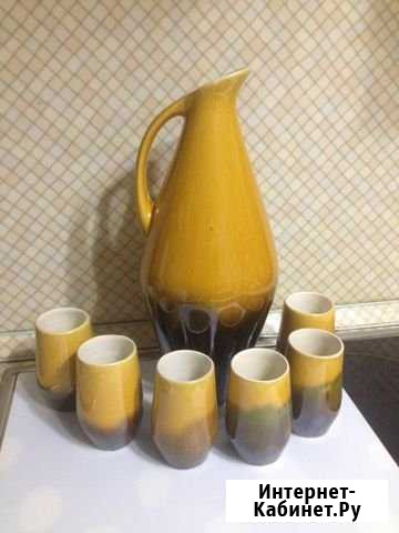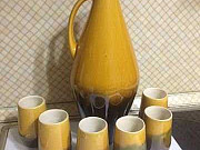 Кувшин для воды / вина / кваса 2,5 л + 6 стаканов 180 мл. Керамика, покрытая глазурью, винтаж, СССР. Без сколов и повреждений. Витринное хранение. Не был в пользовании. Категория: посуда и товары для кухни