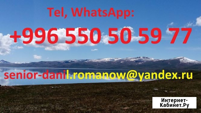 Собираетесь в Кыргызстан? Жду Вас в гости! Меня зовут Даниил, работаю частным гидом и водителем (экскурсии индивидуально и группами, семейные туры, бизнес-туры, фото туры и др.). Свободно говорю на русском, английском и французском языках. Обещаю Вам комфортный отдых и яркие приключения! Tel:...