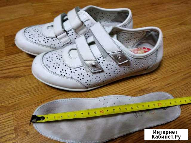 Кожаные белые туфли для девочки. Почти не ношенные. Качество отличное. Размер 36, длина стельки 23,5 Категория: детская одежда и обувь. Размер: 36. Состояние: б/у